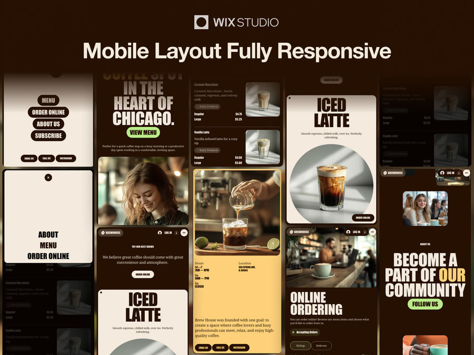 ✔ Order Online Page – Fully integrated with Wix Restaurant Orders for seamless checkout