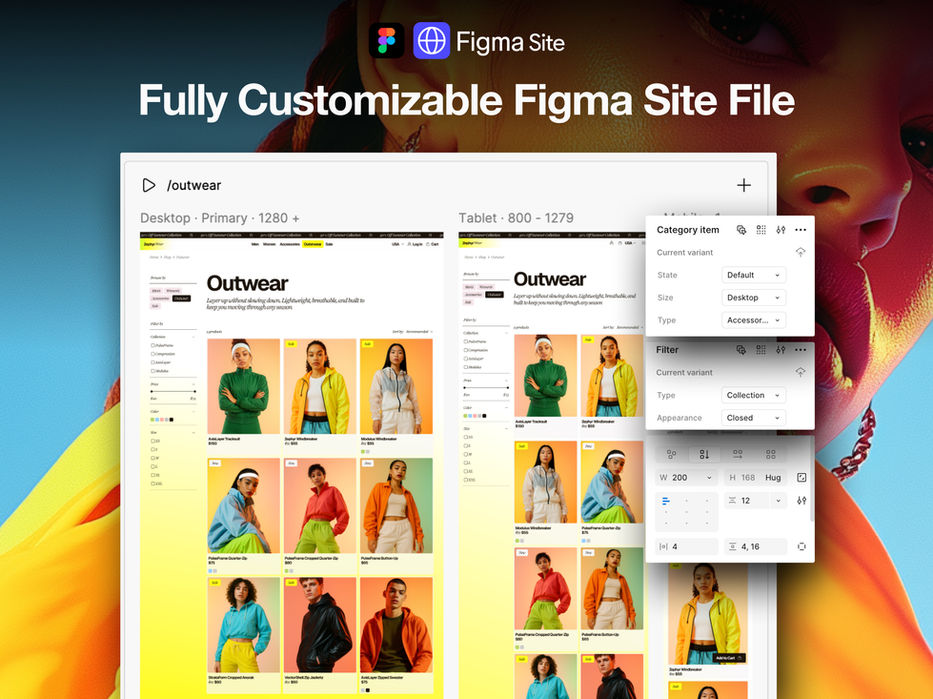 An eCommerce website template built in Figma Sites — Figma’s new no-code platform that lets you design and publish directly from Figma. Ideal for fashion and lifestyle brands, it’s ready to launch, fully responsive, and 100% editable with Auto Layout and components.